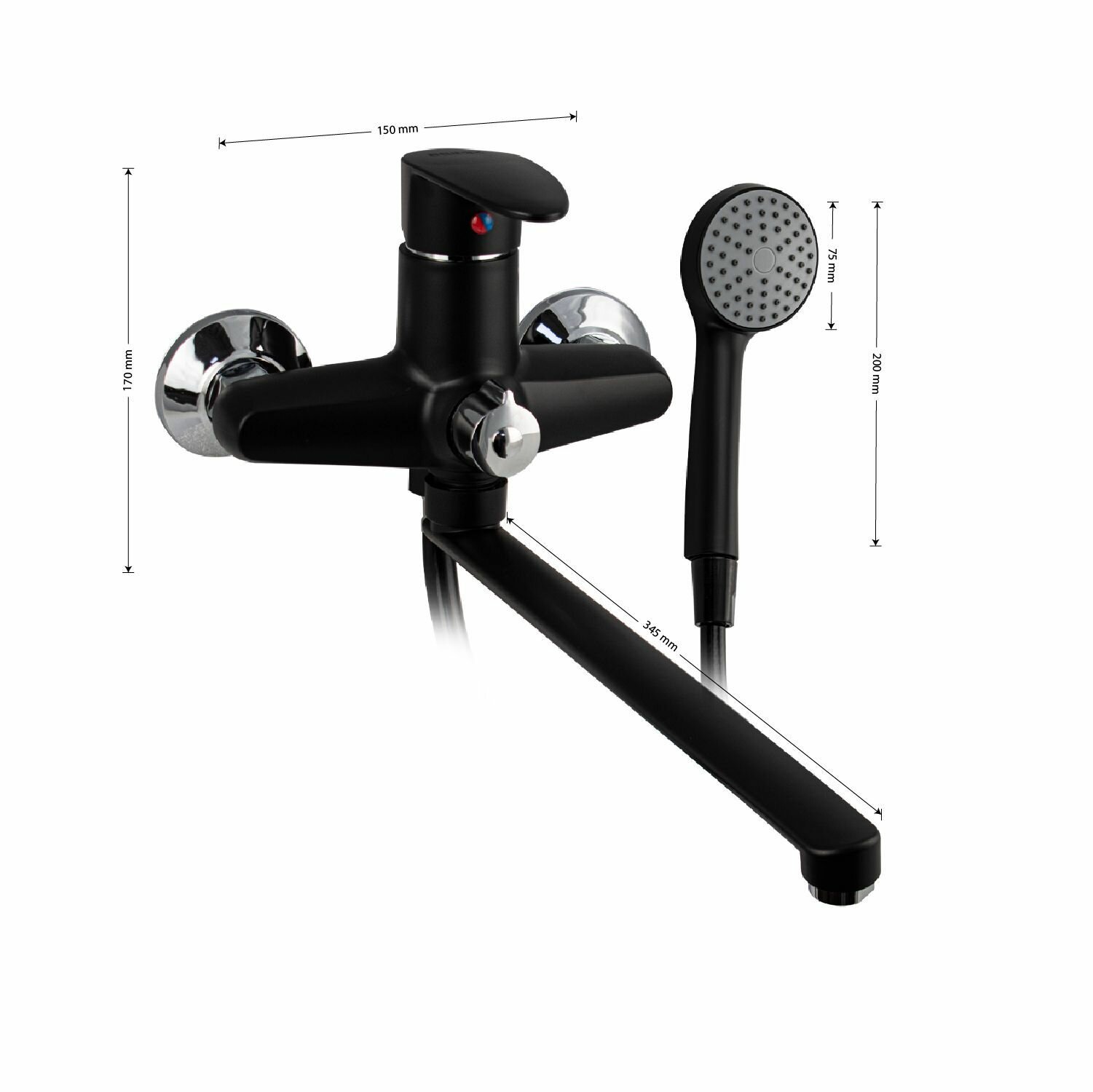 Смесители Смеситель в ванную, длинный излив, шаровый, из высокопрочного пластика АБС, чёрного цвета