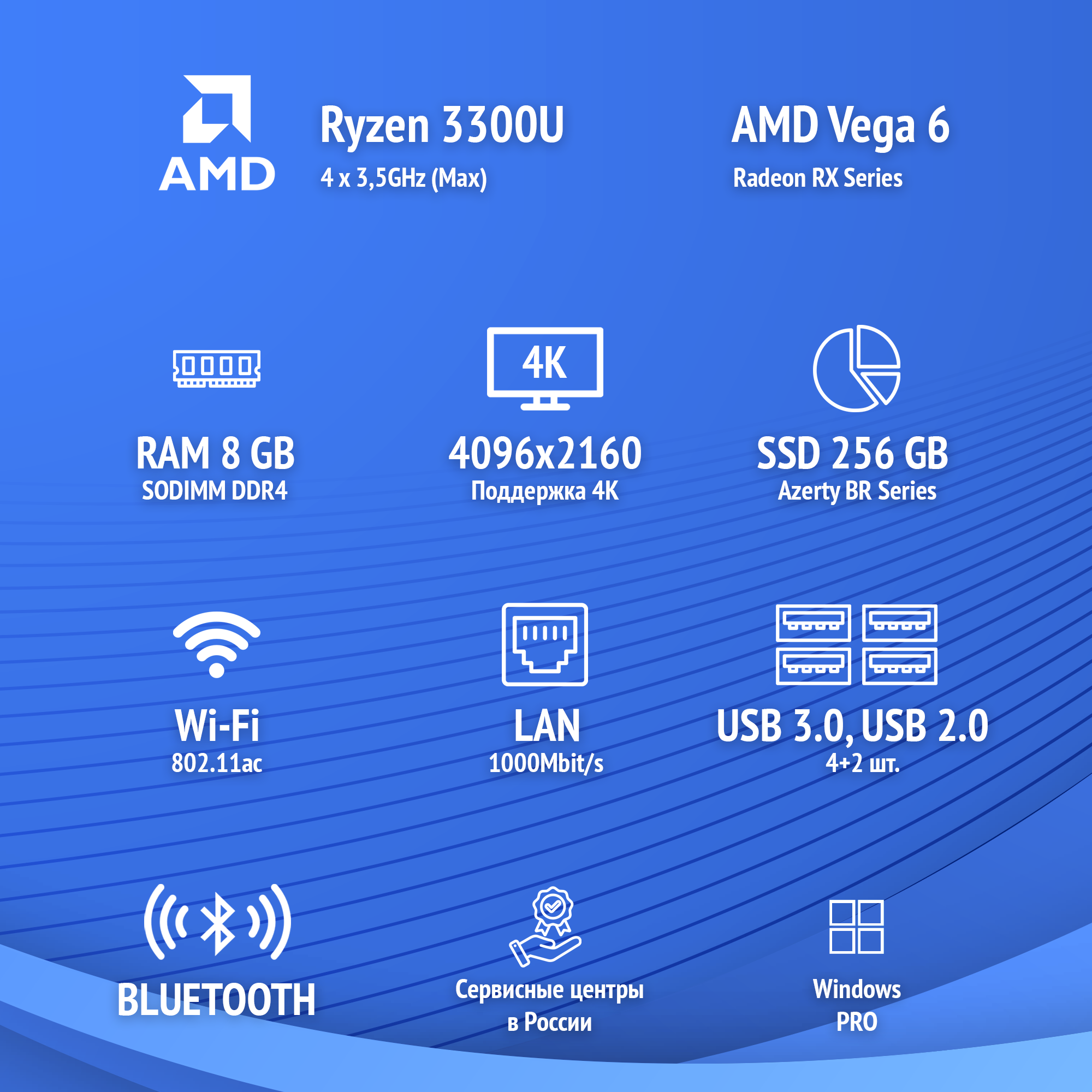 Персональные компьютеры Мини ПК Azerty AZ-0025 (Ryzen R3 3300U 4x2.10 ГГц, 8 Гб DDR4, 256 Гб SSD, Wi-Fi, BT)