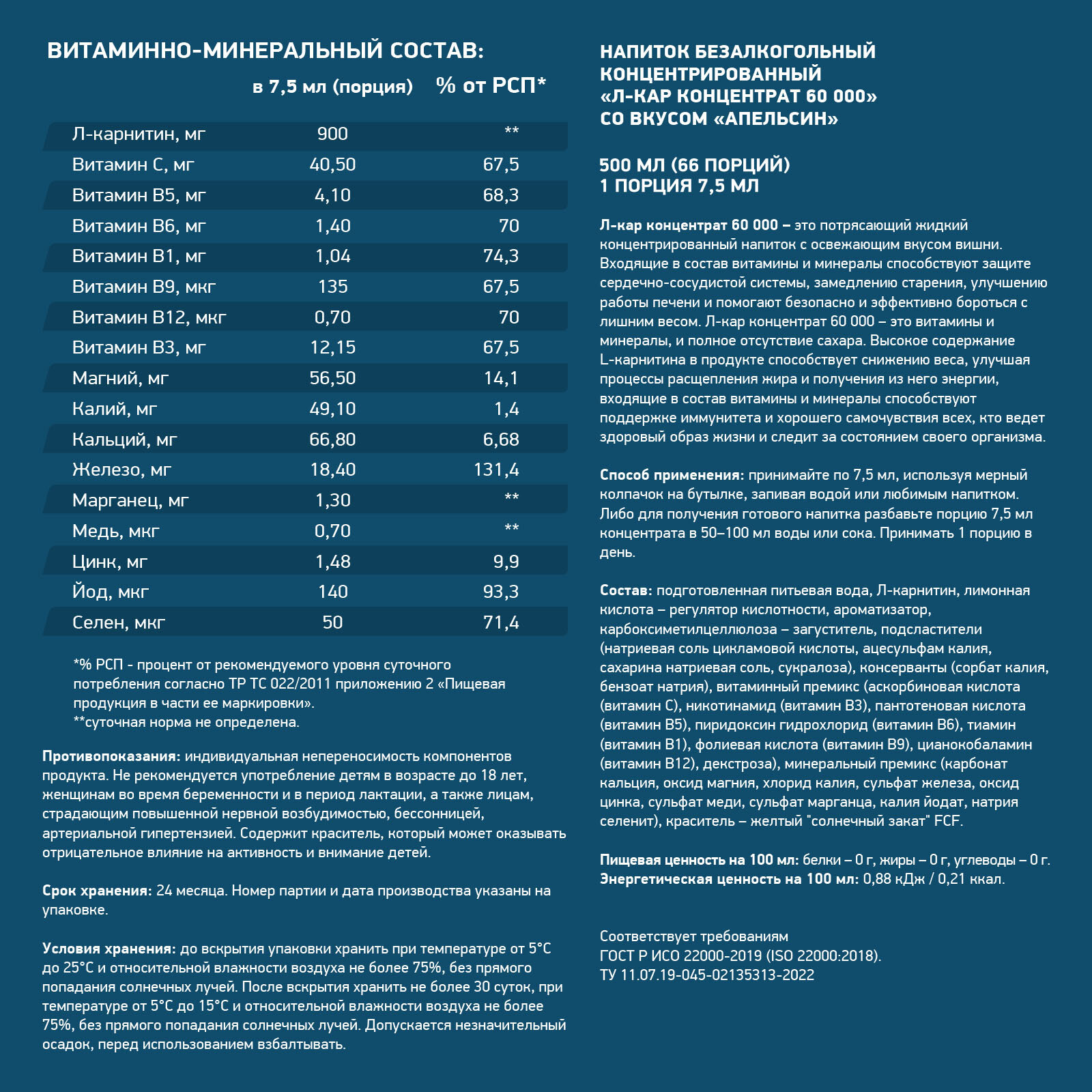 | Состав | L-карнитин |