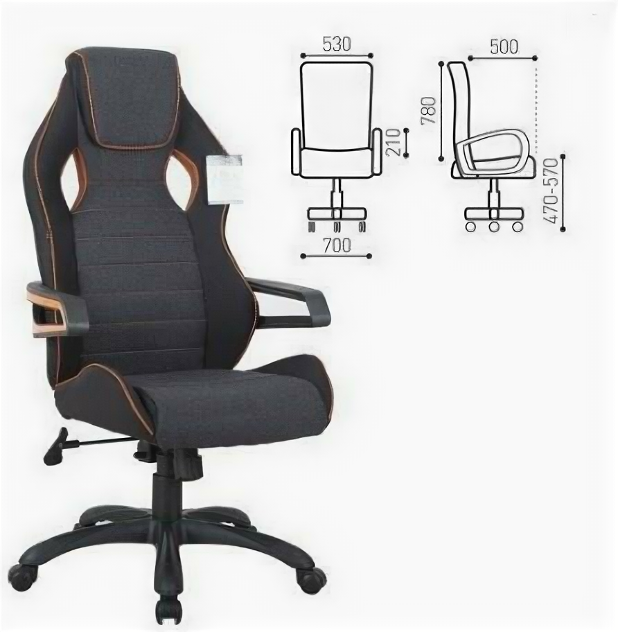 Кресло компьютерное BRABIX "Techno Pro GM-003", ткань, черное/серое, вставки оранжевые, 531813, 1шт. в компл
