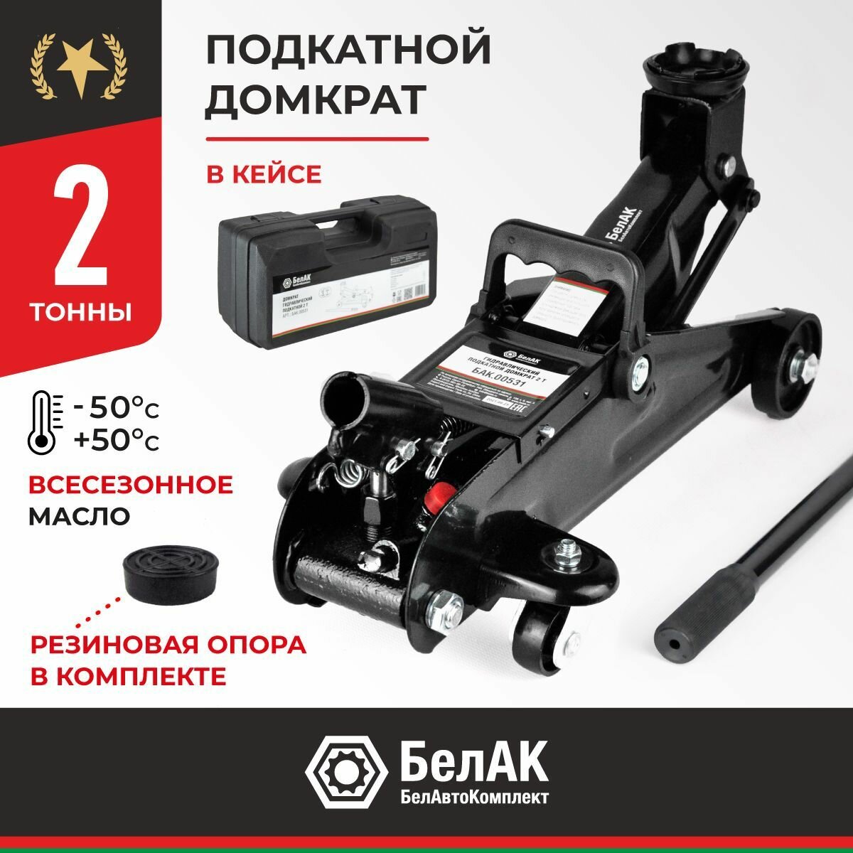 Белавтокомплект BAK00531 БАК.00531_домкрат! подкатной 2 тонны в кейсе\