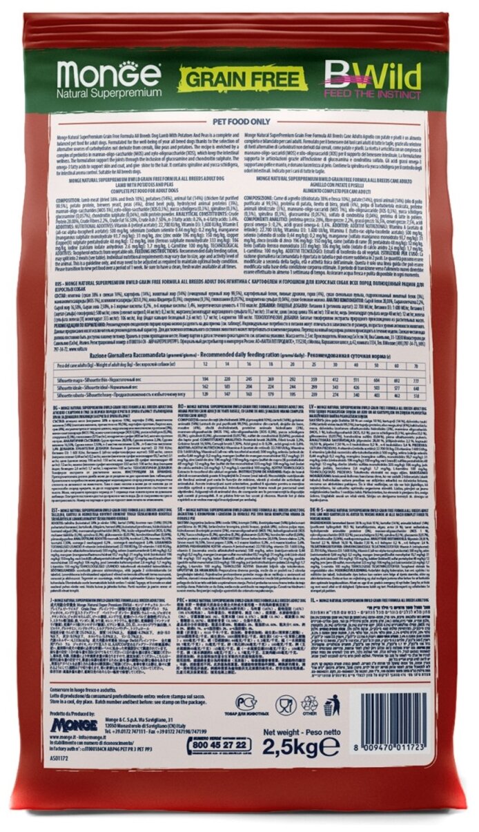 Monge BWILD Feed the Instinct, ягненок, с картофелем, с горошком 2.5 кг
