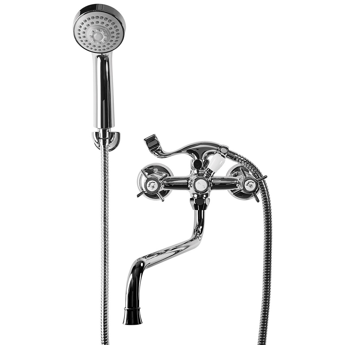 Смеситель ELGHANSA 2702660 PRAKTIC для ванны двухручковый с душевым комплектом