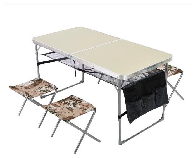 Набор туристический ССТ-К3 5 столешница кофе с молоком (стол влагостойкий с полкой и карманом + 4 складных стула сафари)