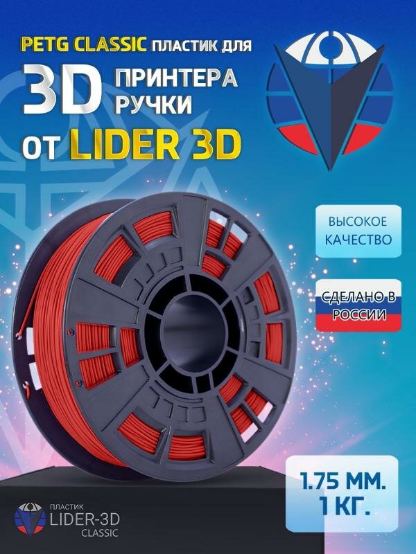 PETG пластик LIDER-3D Classic для 3D принтера 1.75 мм, Красный, 1 кг
