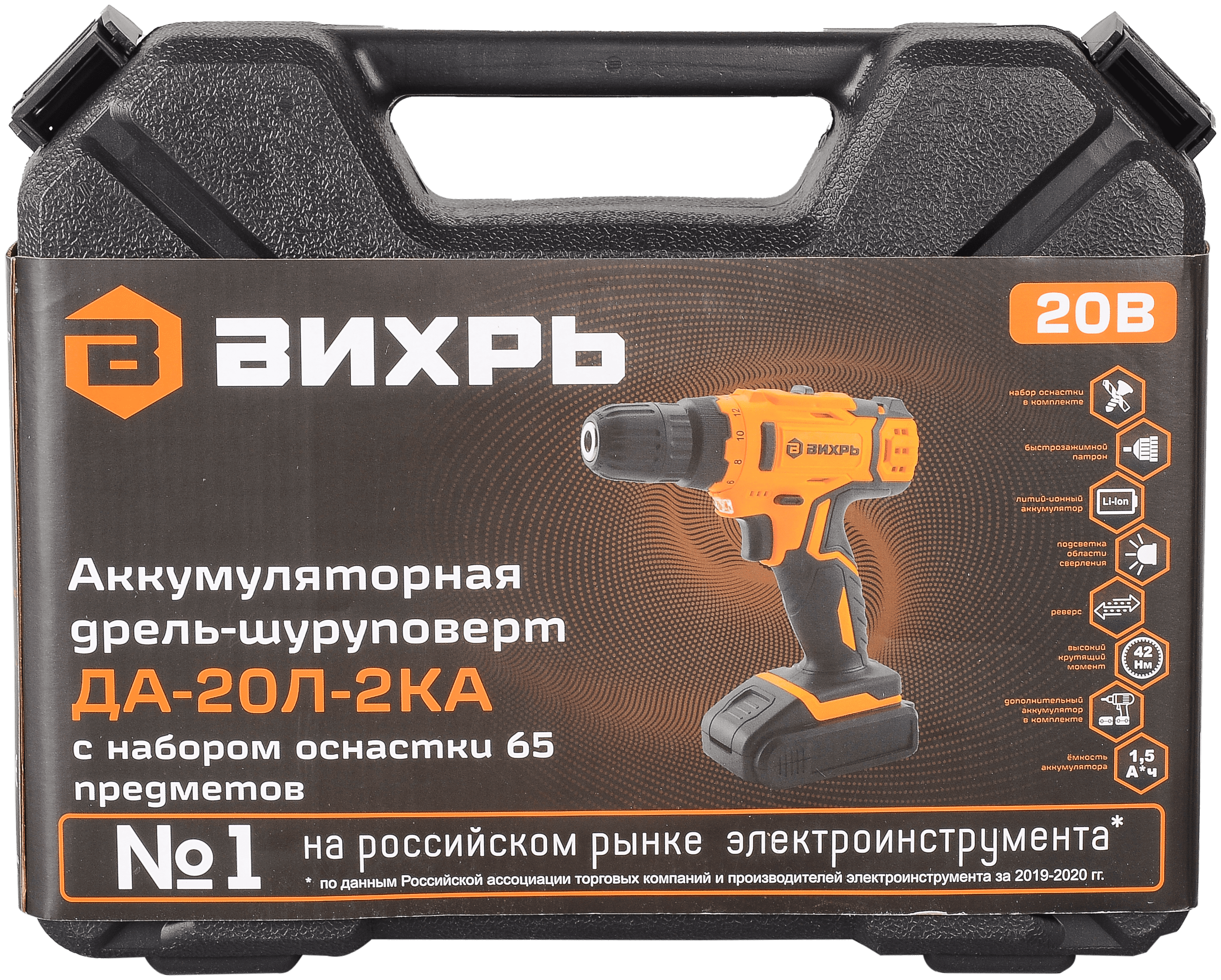 Дрель / шуруповерт Дрель аккумуляторная Вихрь ДА-20Л-2КА 20В Li 1_5Ач 42Нм 10мм 2 аккумулятора_ кейс_ набор оснастки 65 предметов
