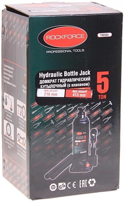 Домкраты Домкрат гидравлический бутылочный, 5т (с предохранительным клапаном, минимальная высота: 185 мм, ход штока: 115 мм, ход винта: 60 мм, максимальная выс Rock FORCE RF-T90504(DS)