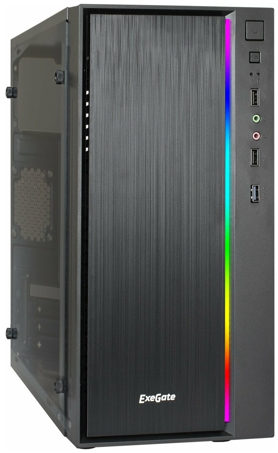 Корпус Minitower ExeGate mEVO-9301-NPX600 (mATX, БП 600NPX с вент. 12см, с окном, 2*USB+1*USB3.0, HD аудио, черный с RGB подсветкой)