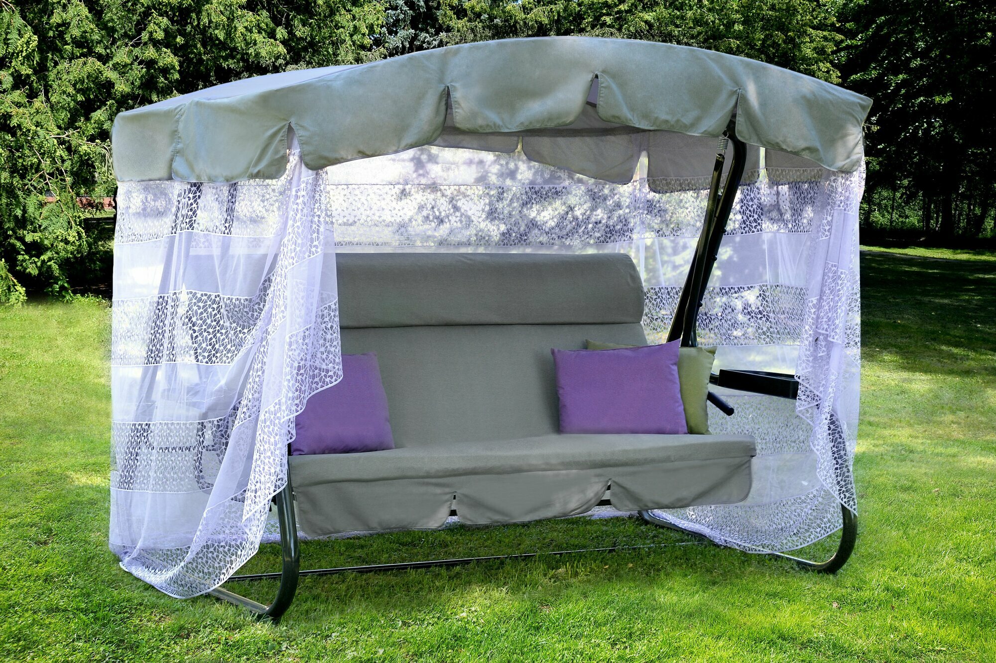 Садовая качель Качели садовые взрослые 244х144х181 см Olsa Азалия с1330, с москитной сеткой, серые