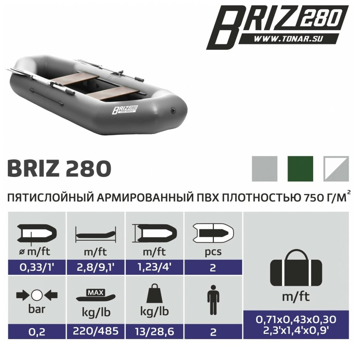 Надувные лодки Лодка Тонар Бриз 280 серый .