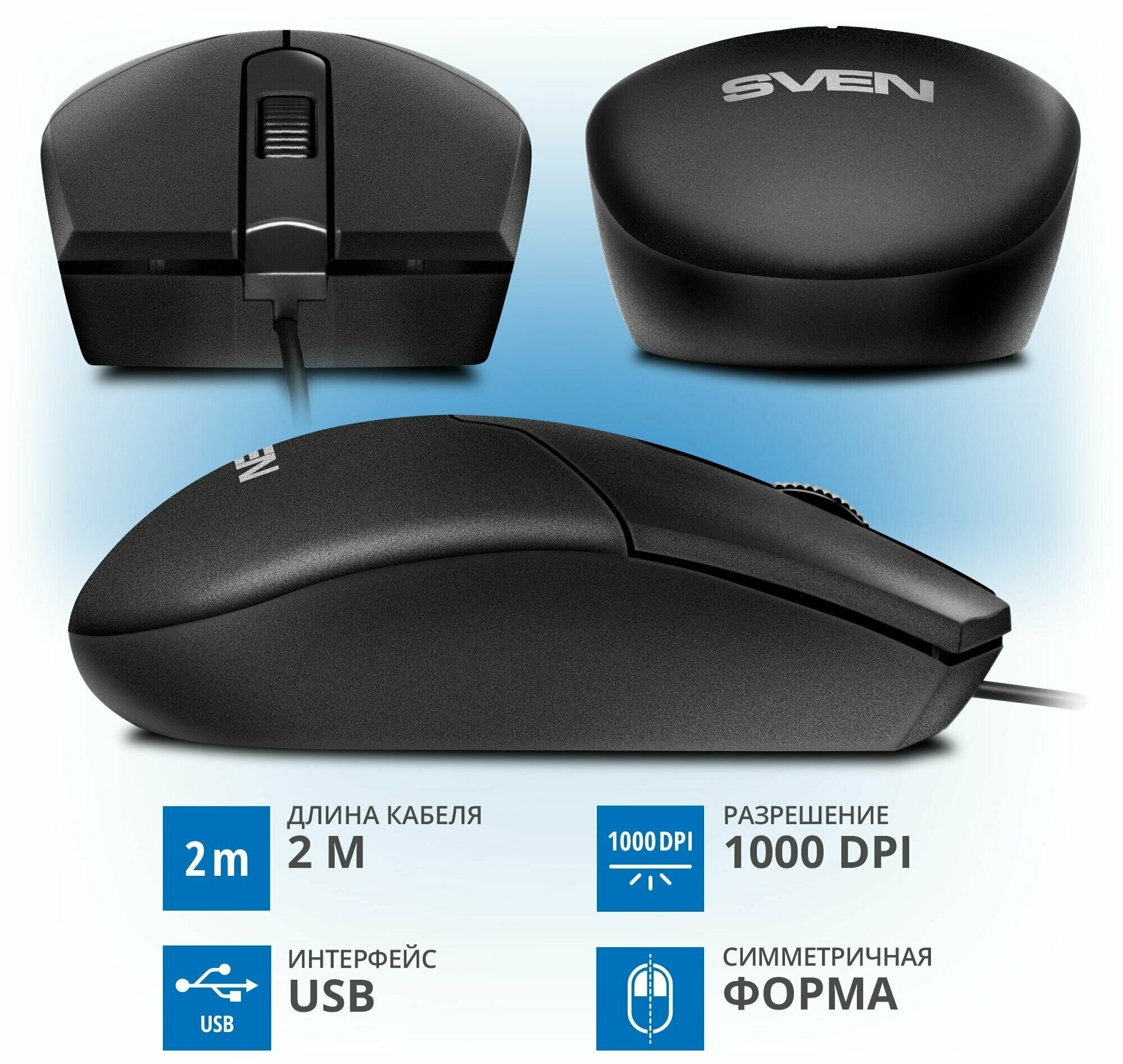Мышь SVEN RX-30 USB чёрная (2+1кл. 1000DPI, цвет. картон, каб. 2м 890 ₽ Подробнее