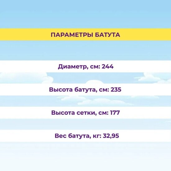 Размер батута (ДхШхВ) | 305x305x203.5 см |