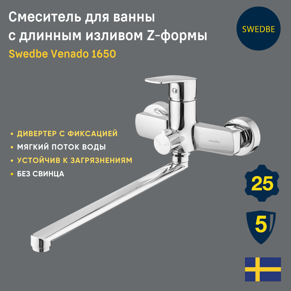 Смеситель для ванны с длинным Z-изливом Swedbe Venado 1650
