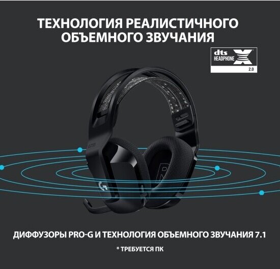Logitech G733 LIGHTSPEED Игровая гарнитура беспроводная, черный