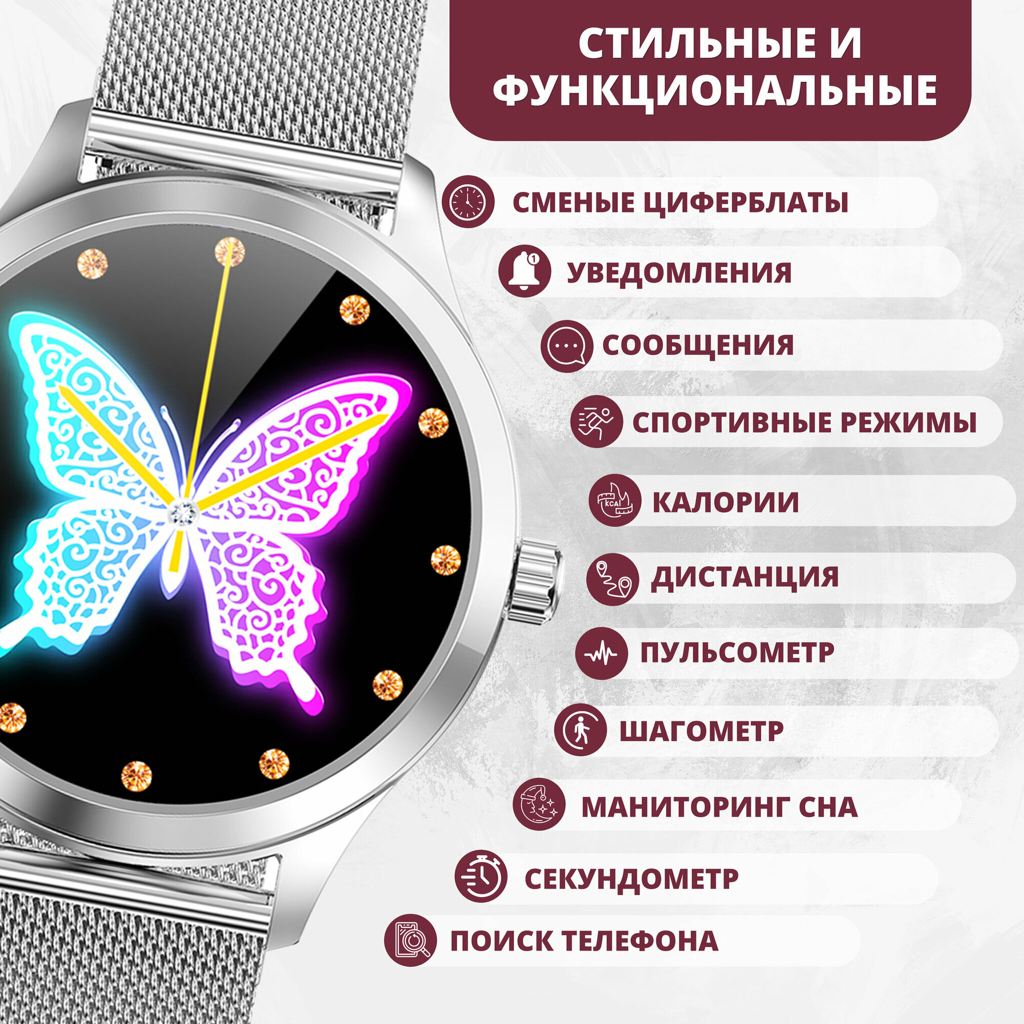 | Цвета ремешков | серебристый, золотистый |