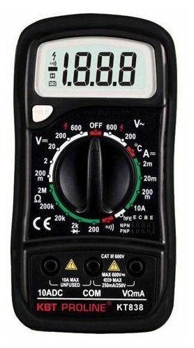 Мультиметр цифровой KT 838 серия PROLINE с основным набором функций и ручным выбором пределов измерений (КВТ)