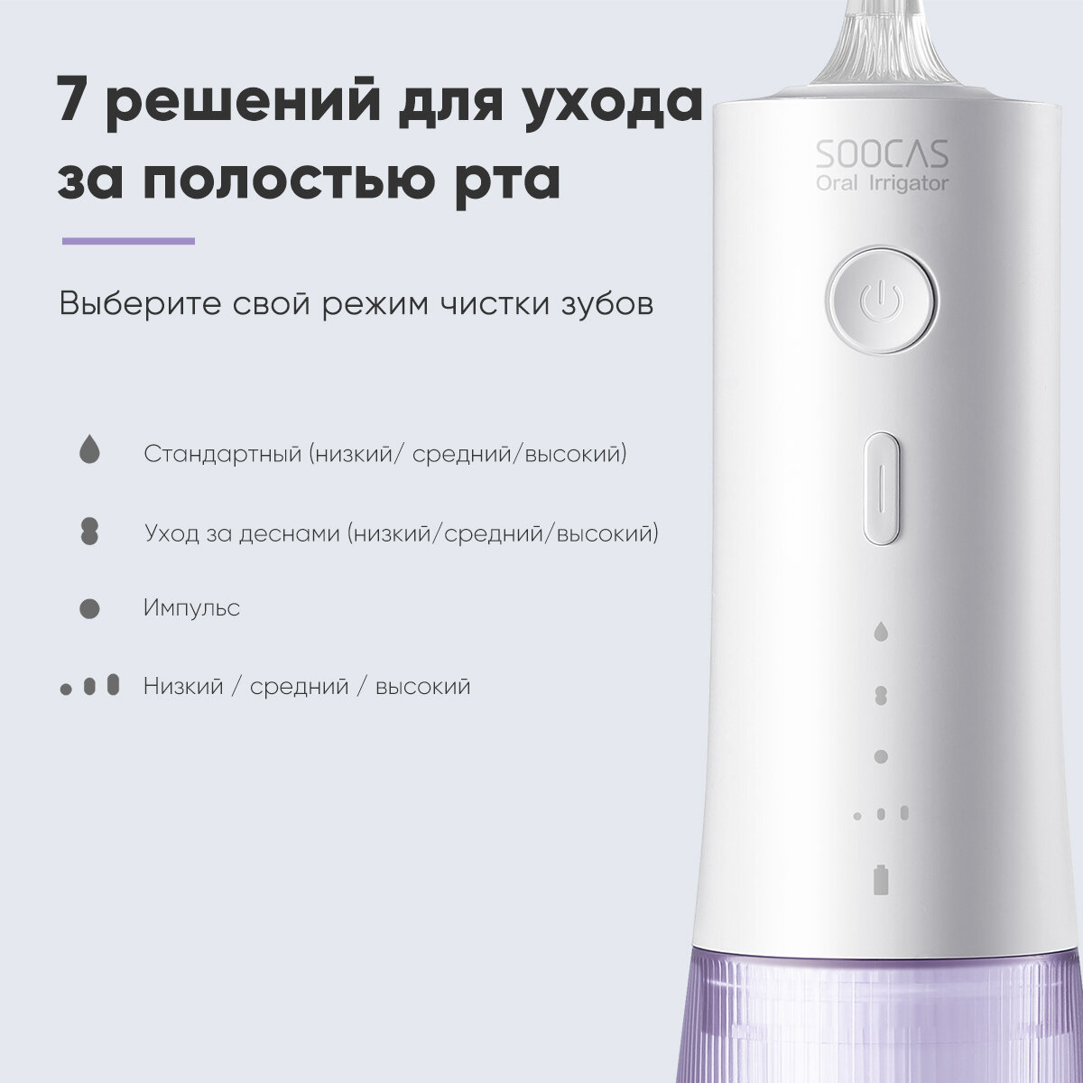 Ирригатор для полости рта Soocas W3 PRO, Портативный (4 насадки, кейс для насадок в комплекте), 7 режимов
