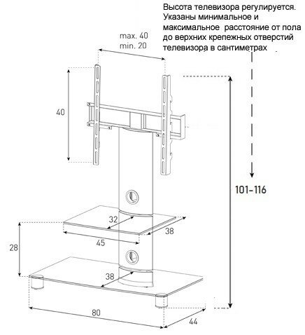 | Крепление VESA | 200x100 мм / 200x200 мм / 200х300 мм / 200x400 мм / 300x200 мм / 300x300 мм / 300x400 мм / 400x200 мм / 400x300 мм / 400x400 мм |