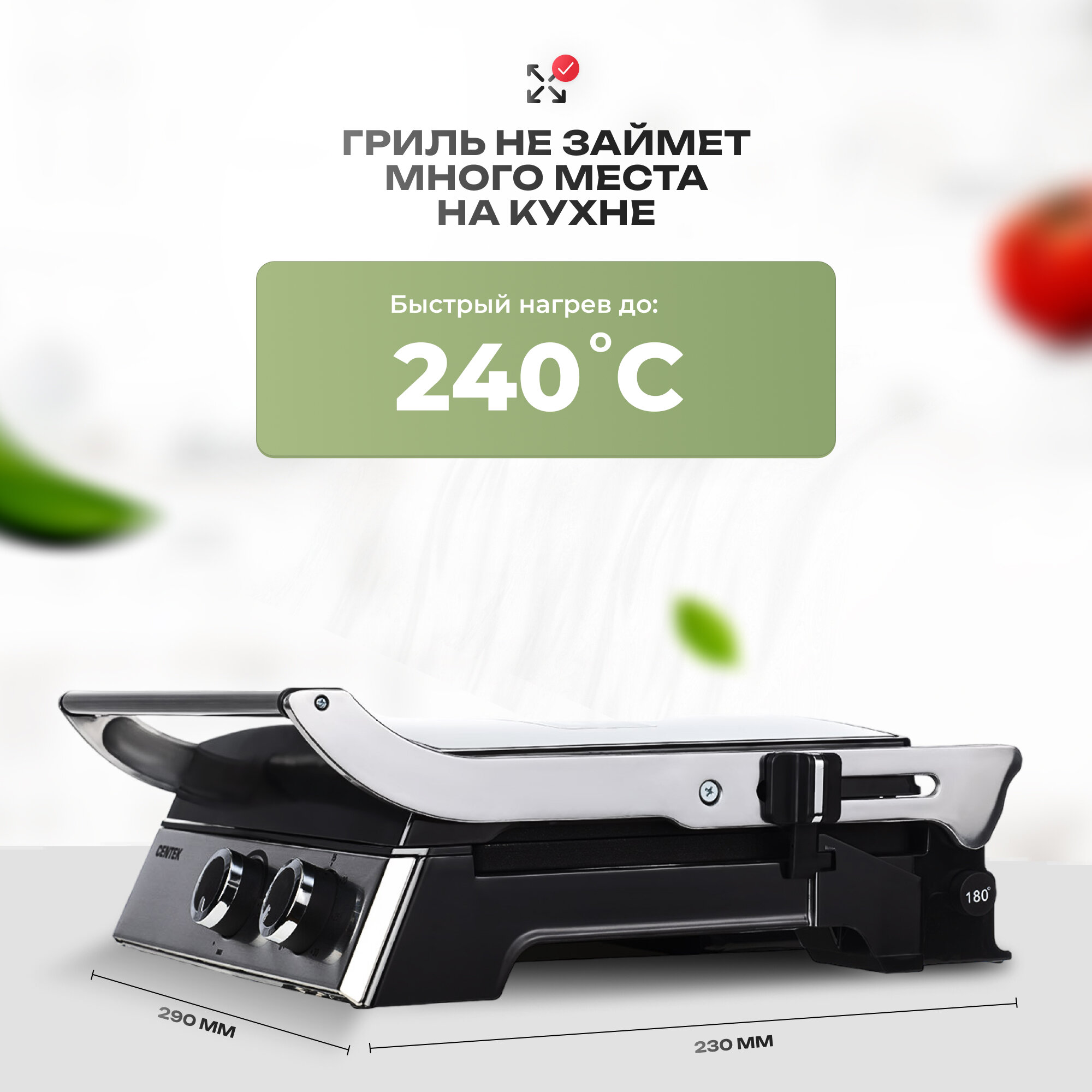 Контактный гриль Centek CT-1469 1500 Вт 254х178мм авторегул. высоты и контроль t°, антипригар, LED
