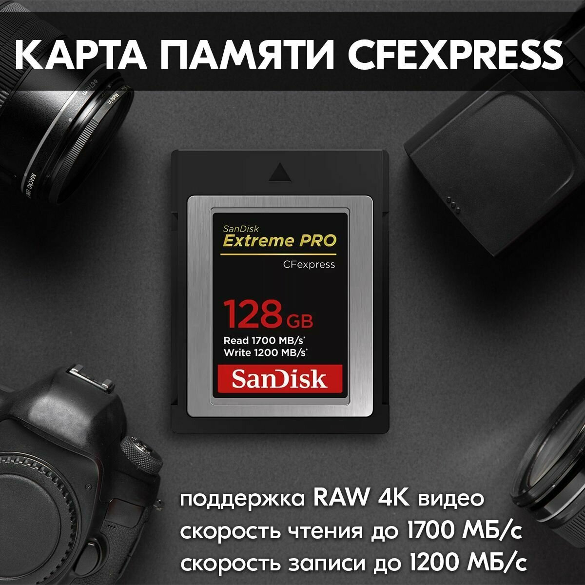 Карта памяти SanDisk CFexpress Type B 128 ГБ, R/W 1700/1200 МБ/с