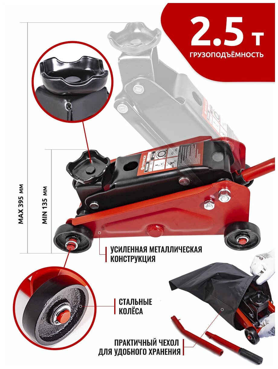 Домкрат подкатной гидравлический с резиновой накладкой 2,5т (h min 135мм, h max 387мм) в кейсе,без фиксации Forsage F-TH22501 без фиксации в кейсе 8 570 ₽ Подробнее