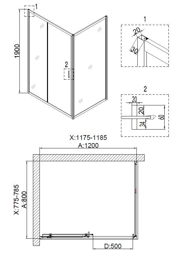 Душевое ограждение NG- 6611-08 (120*90*190) прямоугольник, двери раздвижные, 1 место 23 300 ₽ Подробнее