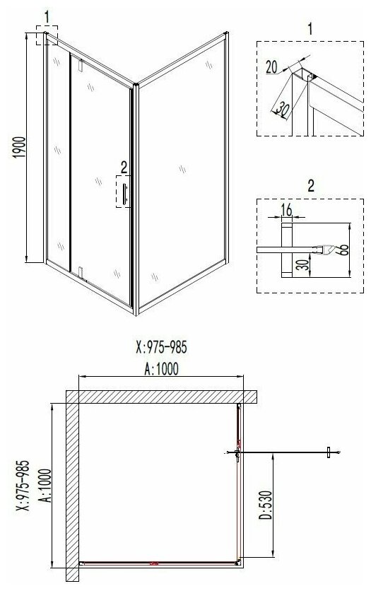 Душевая кабина Душевое ограждение Niagara Nova NG- 6602-08 (100*100*190) квадрат, дверь распашная