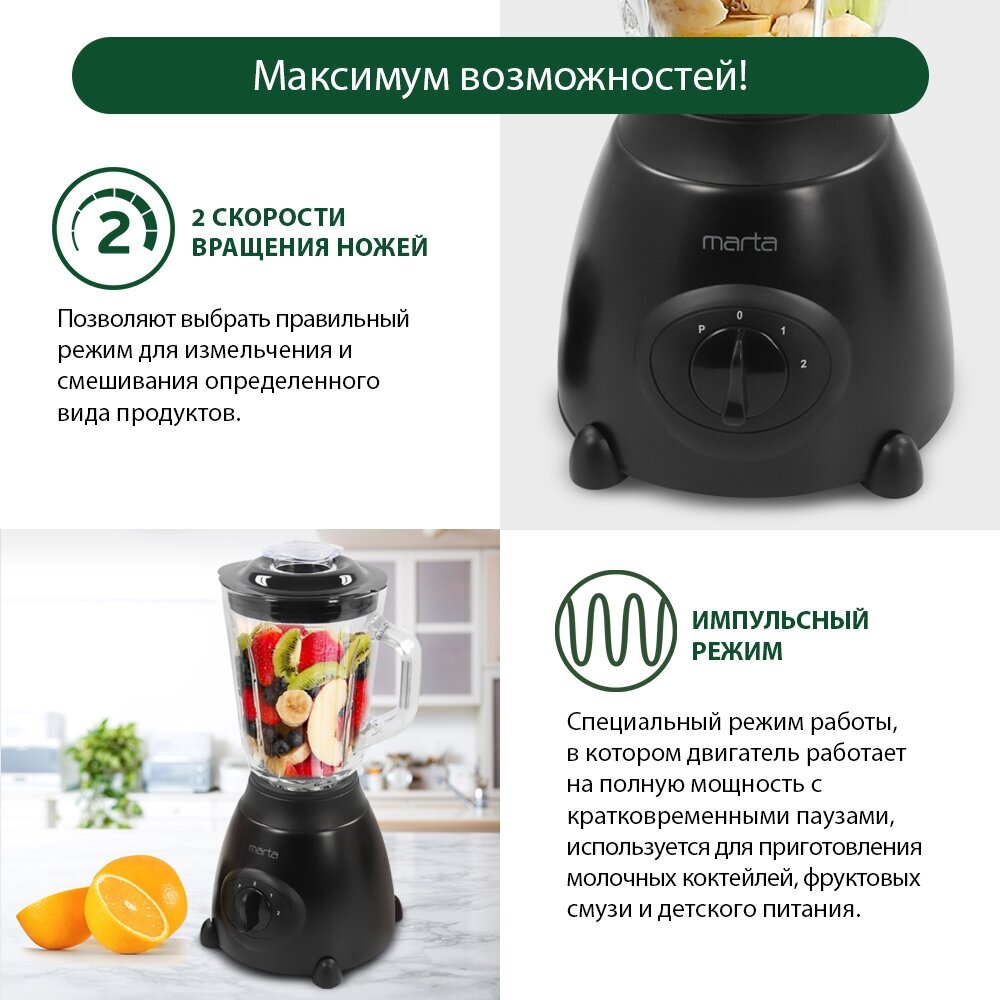 Стационарный блендер MARTA MT-1590, черный жемчуг