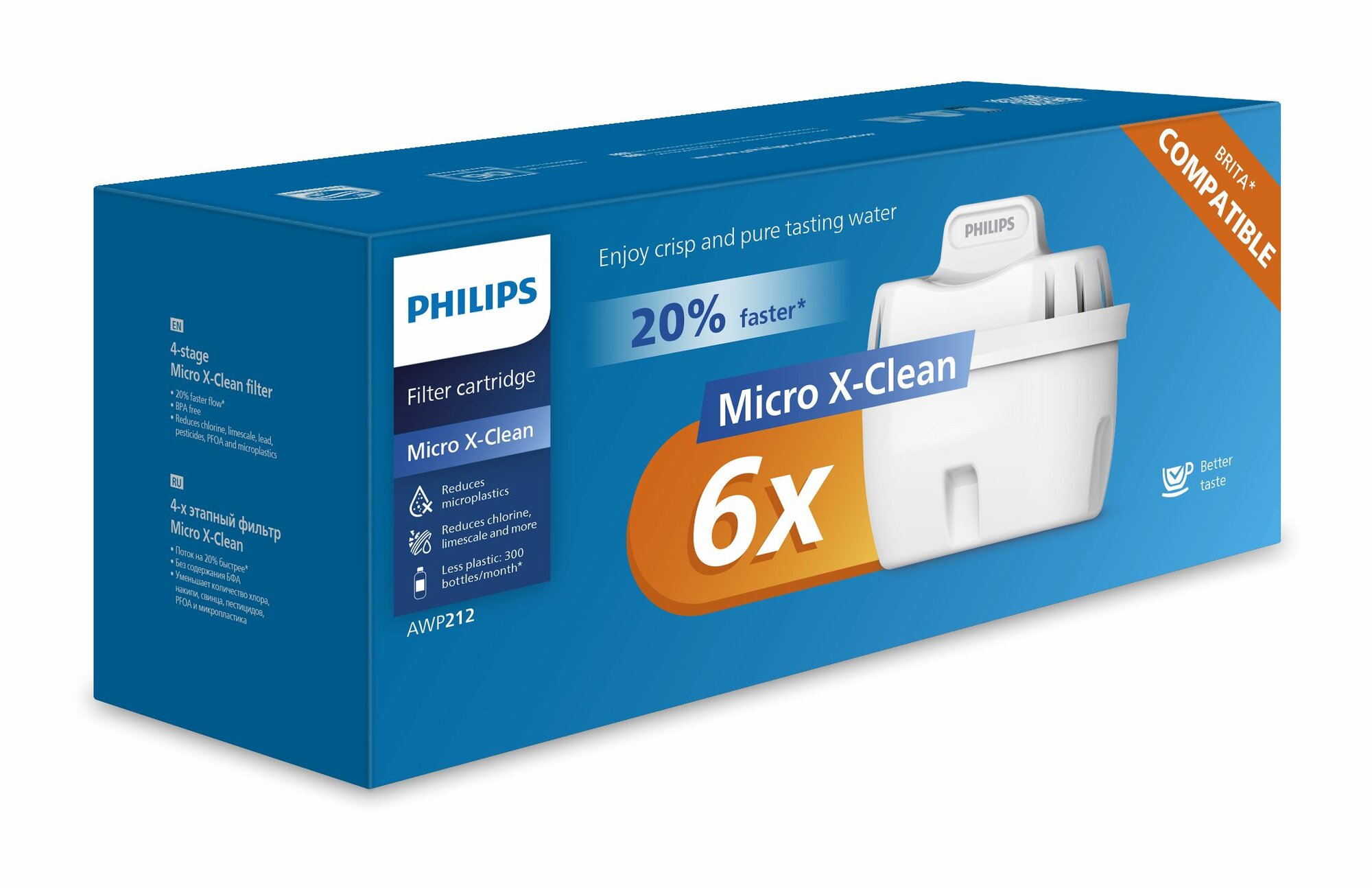 Картридж Philips Micro X-Clean AWP210/51 фильтр для очистки воды, совместим с кувшинами Brita MAXTRA и MAXTRA+, скорость фильтрации 0,3 л/мин, 1 шт