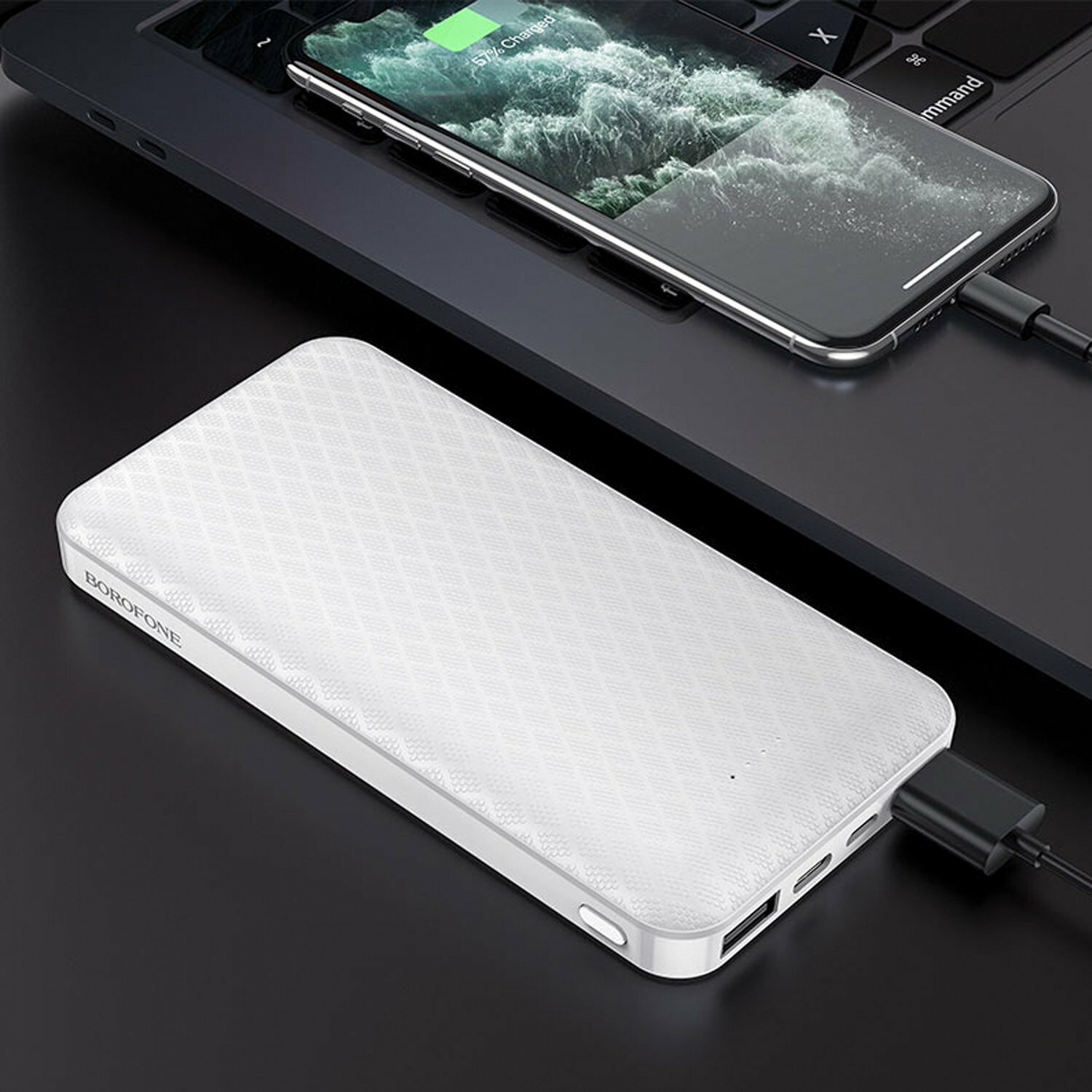 Мобильный аккумулятор BOROFONE BJ3, Minimalist, 10000mAh, пластик, индикатор, 2 USB выхода, микро USB, Type-C , 2.0A, белый (6931474736857)