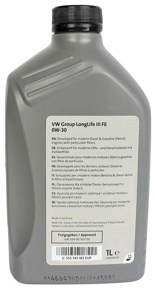 Моторное масло VAG LongLife III 0W-30 504 00/507 00 1 л, масло моторное синтетическое