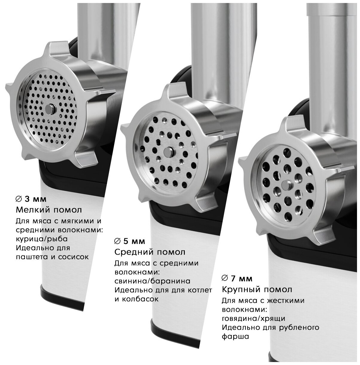 | Насадки | 3 диска для фарша, для кеббе, для домашних колбас |