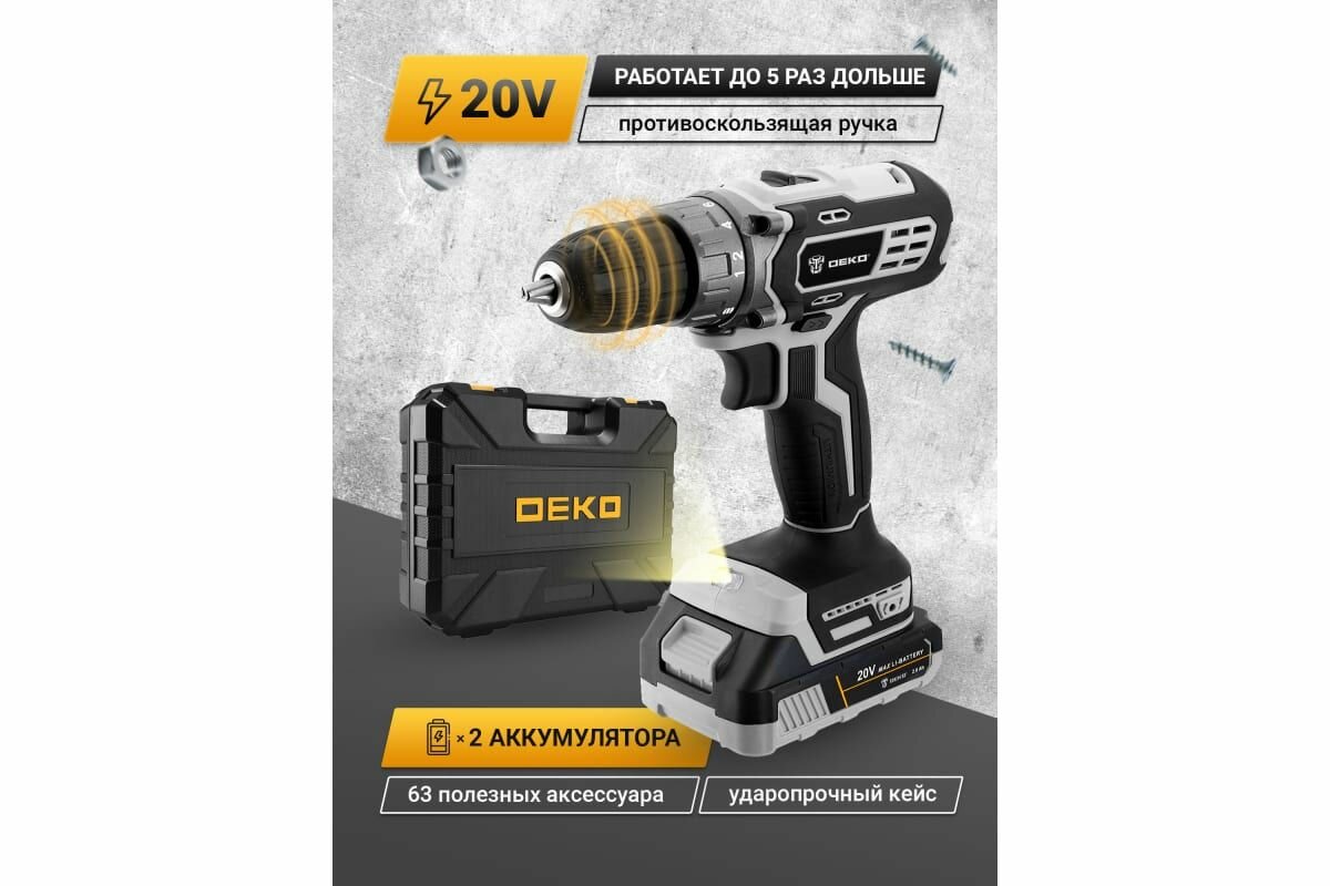 Аккумуляторная дрель-шуруповерт DEKO DKCD20FU-Li в кейсе +набор 63 инструмента для дома 11 502 ₽ Подробнее