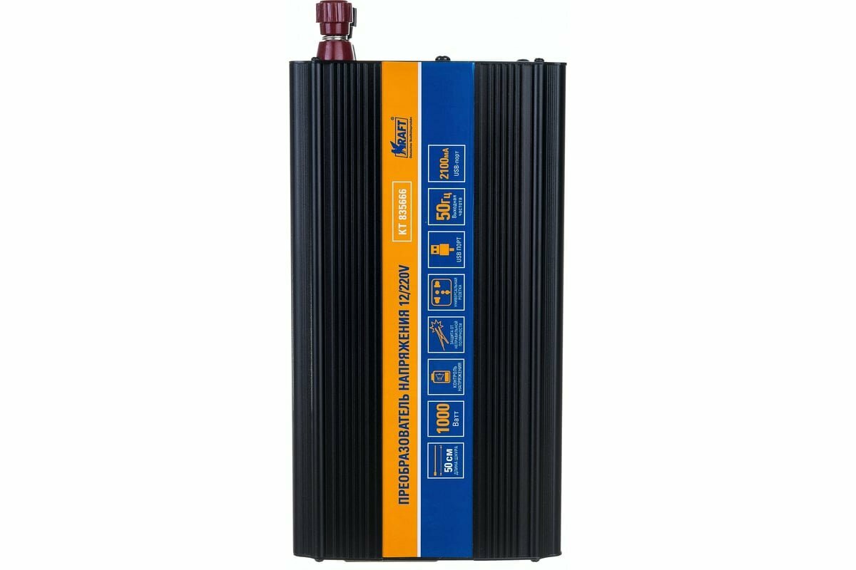Инвертор Автомобильный 12/220V 1000W. Kt 835666 "Kraft" Kraft арт. KT 835666