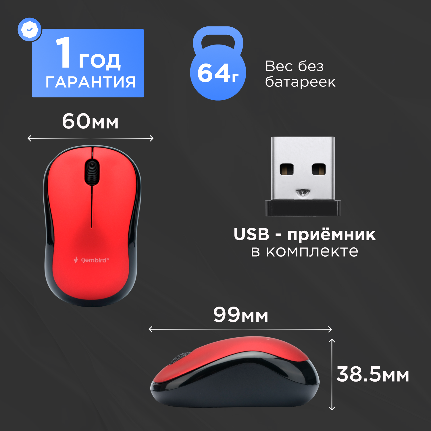 Мышь беспроводная GEMBIRD MUSW-270 (красный) 290 ₽ Подробнее
