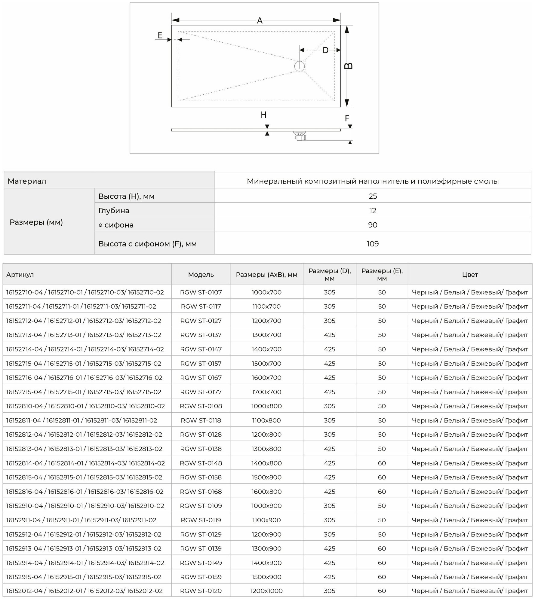 Поддон для душа из искусственного камня RGW ST-G 90х110 Графит 16152911-02