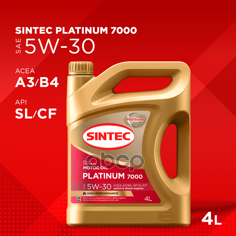 масло sintec 5w30 platinum 7000 api sl/cf acea a3/b4 4л син