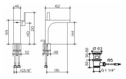 Keuco 51102010000 Edition 11 Смеситель для раковины H 210, с гарнитурой для слива и донным клапаном 1.1/4", хром 77 696 ₽ Подробнее