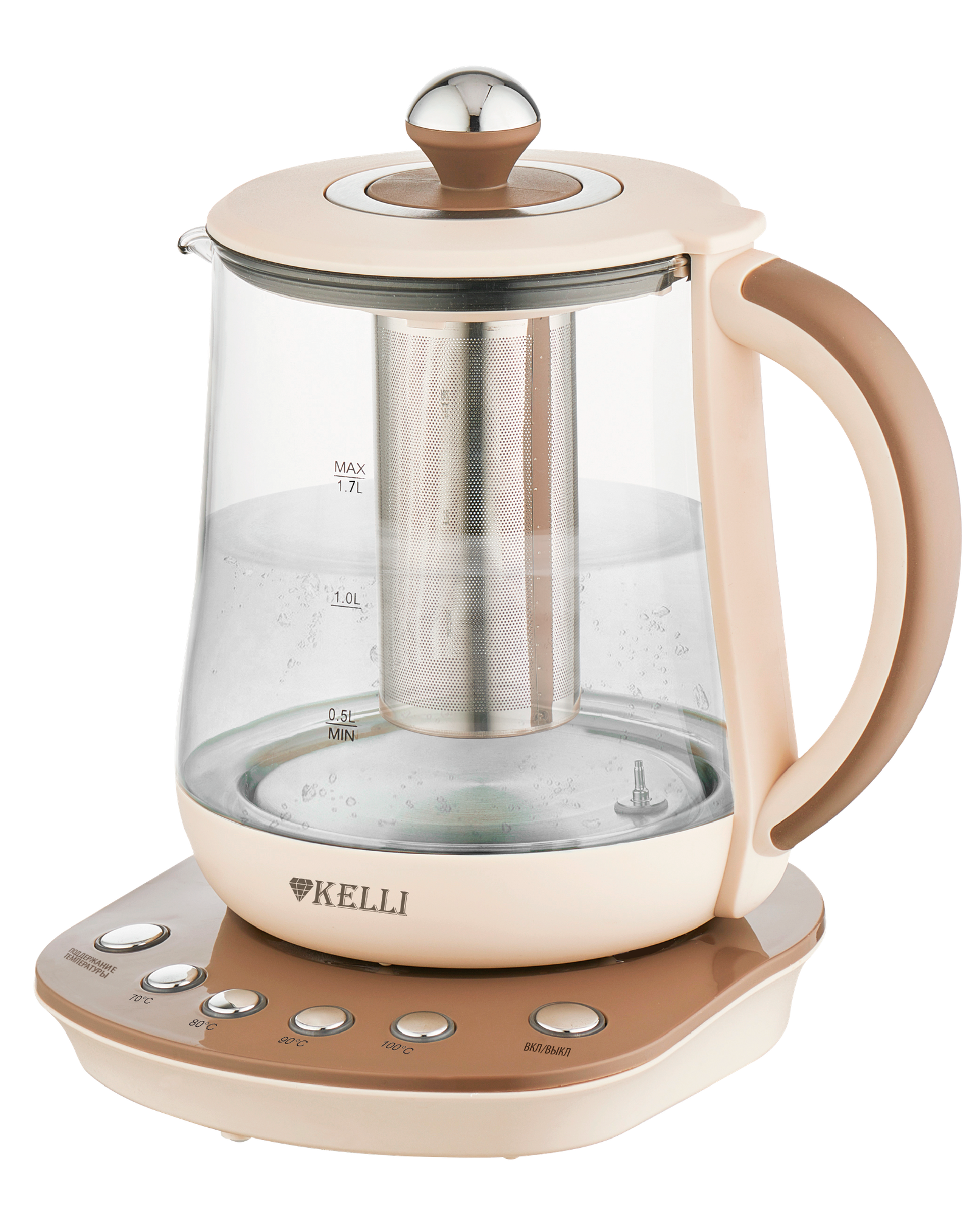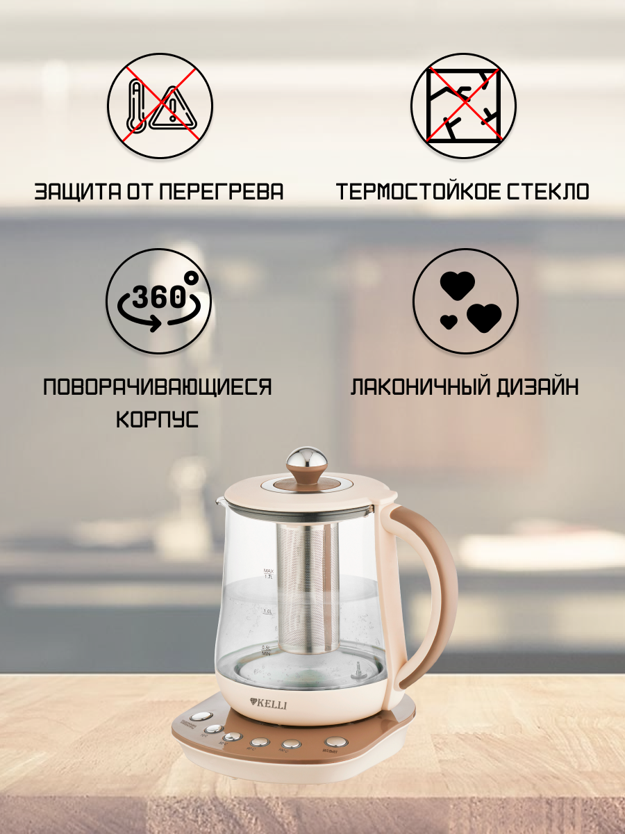 Чайник электрический Kelli KL-1373 / 1.7 л / 2200 Вт / 4 температурных режима / стекло / кофейный