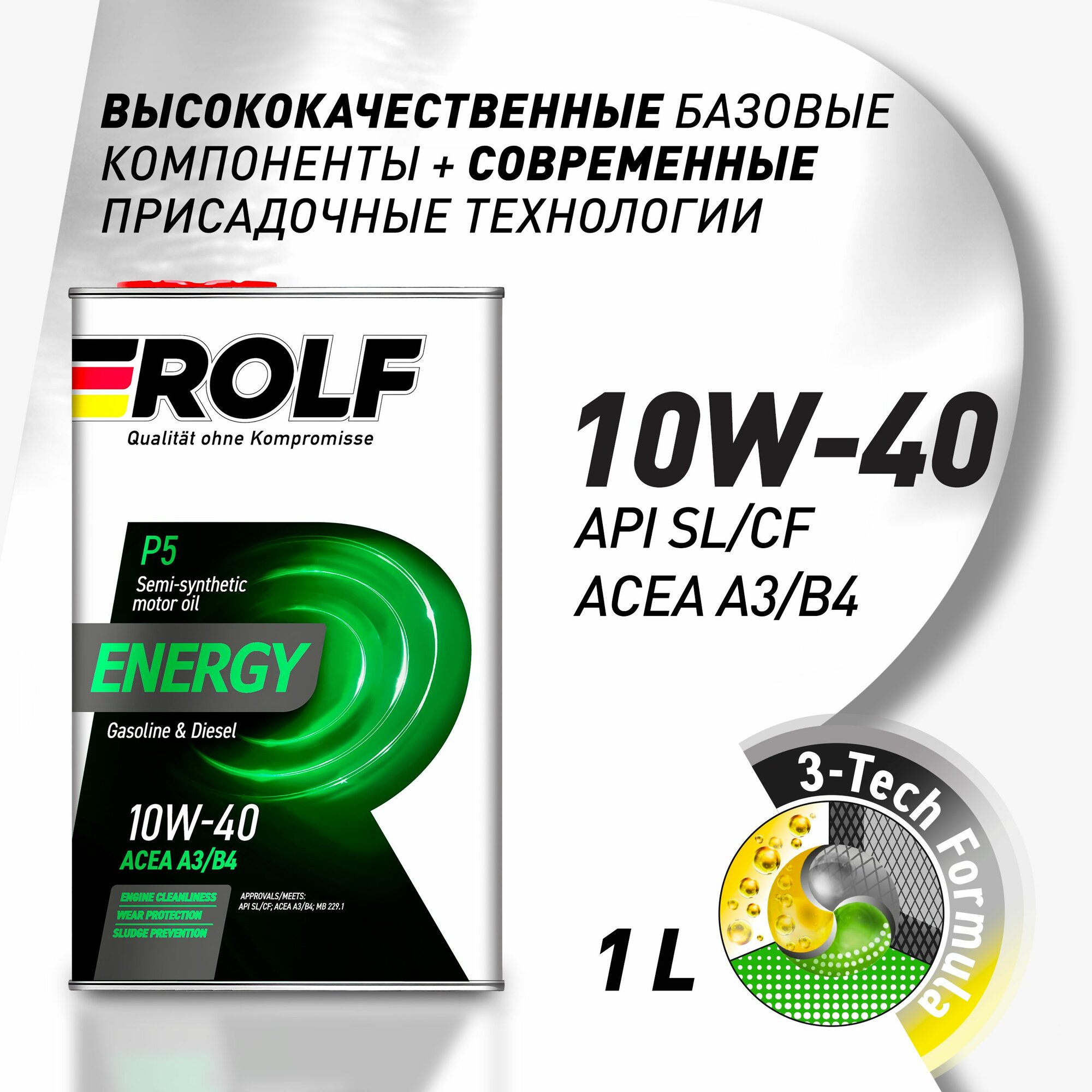 Масло моторное полусинтетика ROLF Energy SAE 10W-40 API SL/CF ACEA A3/B4 4л пластик (322425)