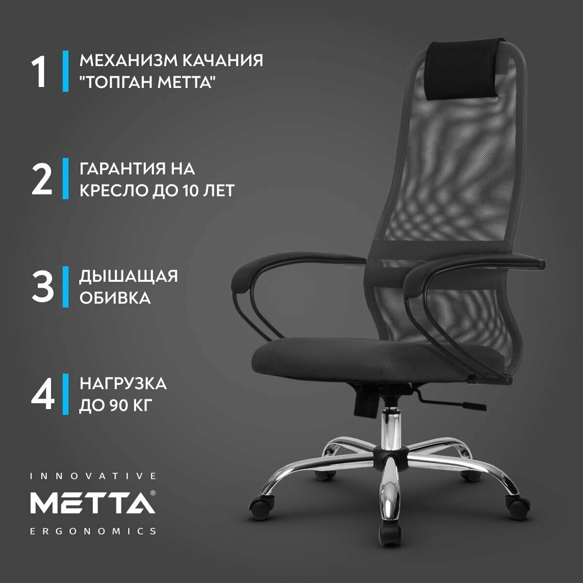 Кресло Метта SU-B-8 / подл.130 / осн.003 Темно-серый