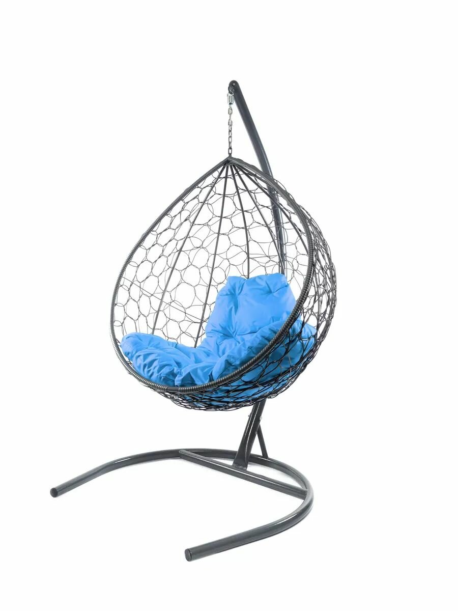 Подвесное кресло капля ротанг черное(без стойки), голубая подушка
