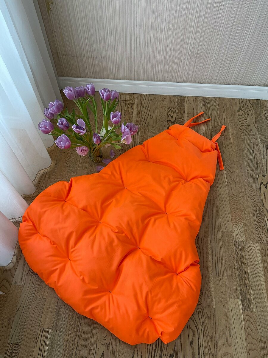 Садовая качель Подвесное кресло капля ротанг черное(без стойки), оранжевая подушка