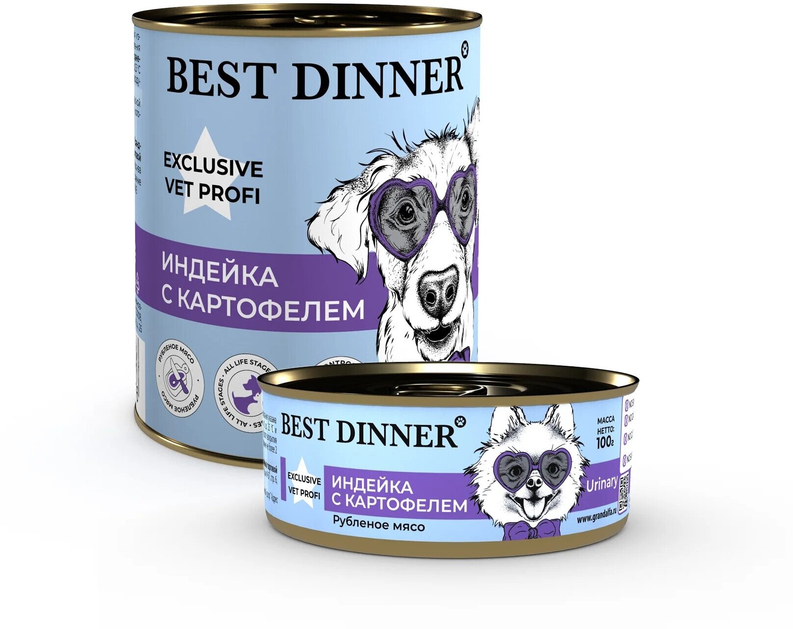 Влажный консервированный корм для собак Бест Диннер Best Dinner Urinary "Индейка с картофелем" Exclusive VET PROFI 100 гр. По 24 шт