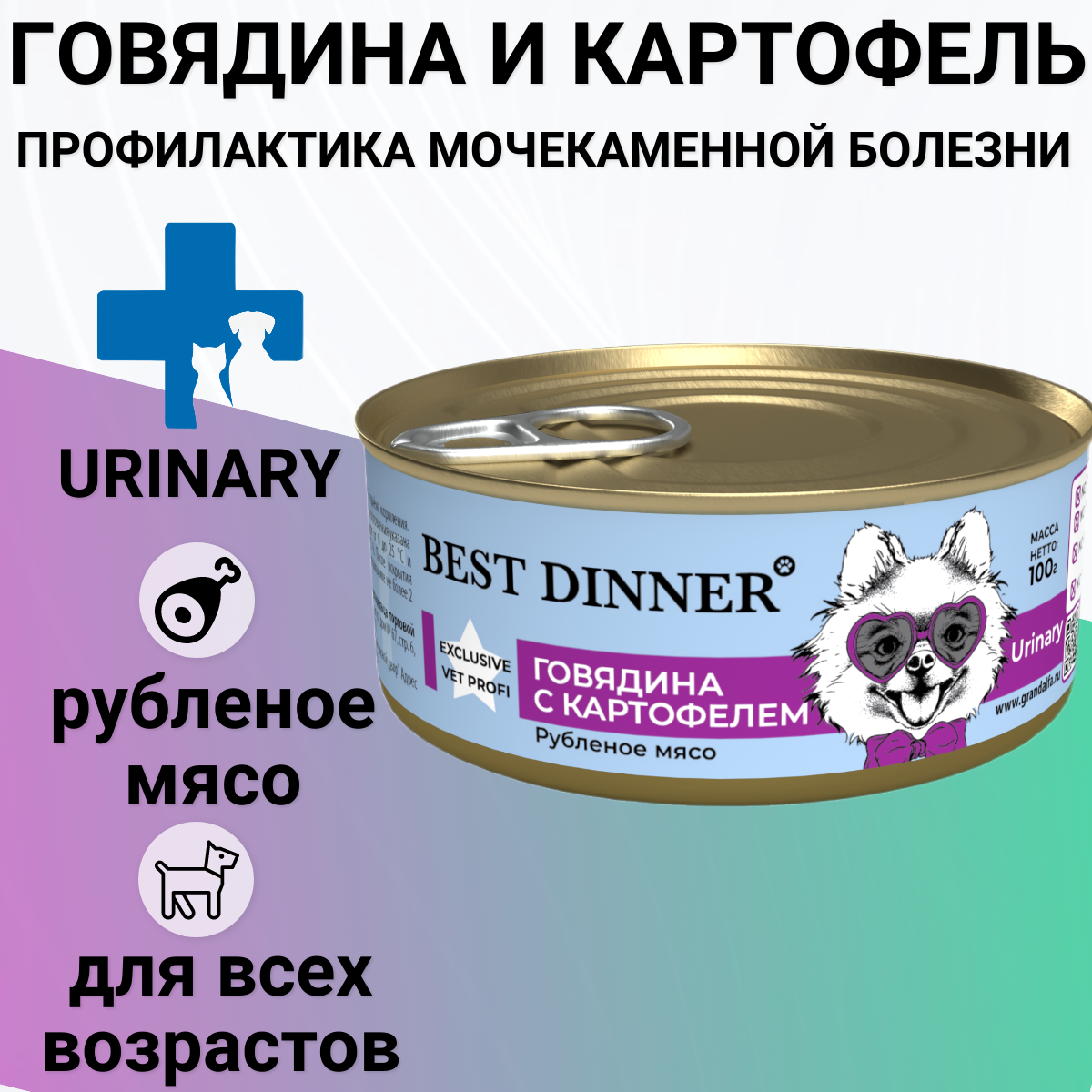 BEST DINNER EXCLUSIVE VET PROFI URINARY для взрослых собак и щенков при мочекаменной болезни с говядиной (100 гр)