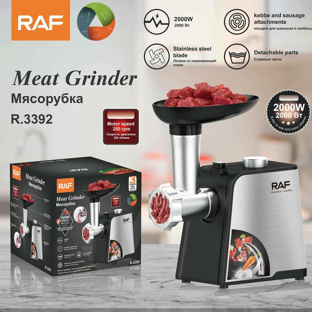 Мясорубки Мясорубка от фирмы "RAF", (R3392) с насадками для фарша и системой реверса будет идеальным помощником на вашей кухне.