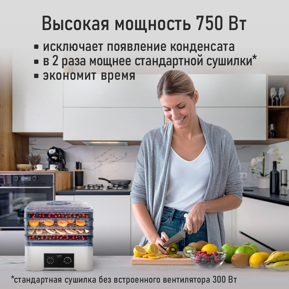 Сушилки фруктов Электросушилка STINGRAY ST-FD702C 7 поддонов: 4 разборных поддона для сушки, 1 обычный поддонов, 2 для пастилы белый жемчуг