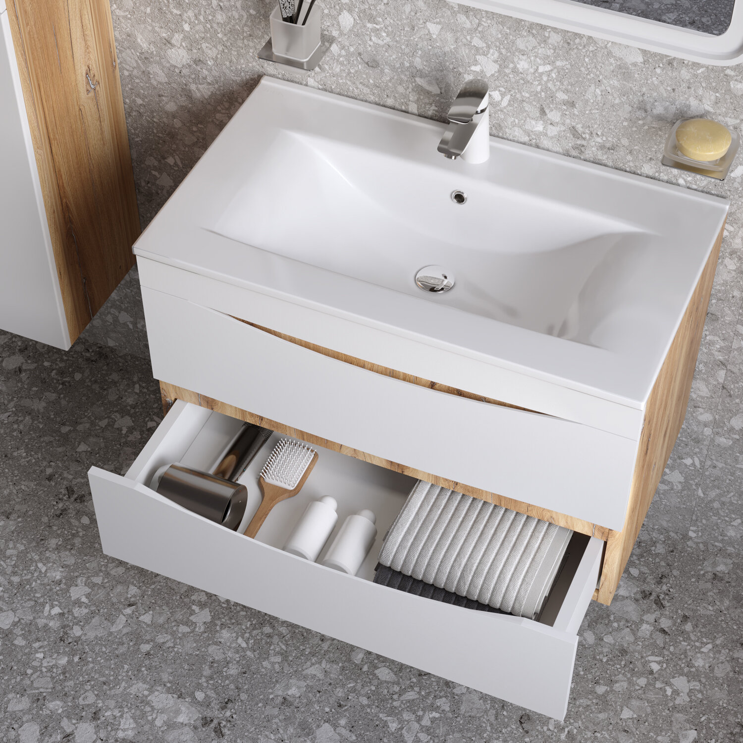 Тумба под умывальник Тумба с умывальником, подвесная, 80 см, белая/золотистый дуб, Cloud, IDDIS, CLO80Y0i95K