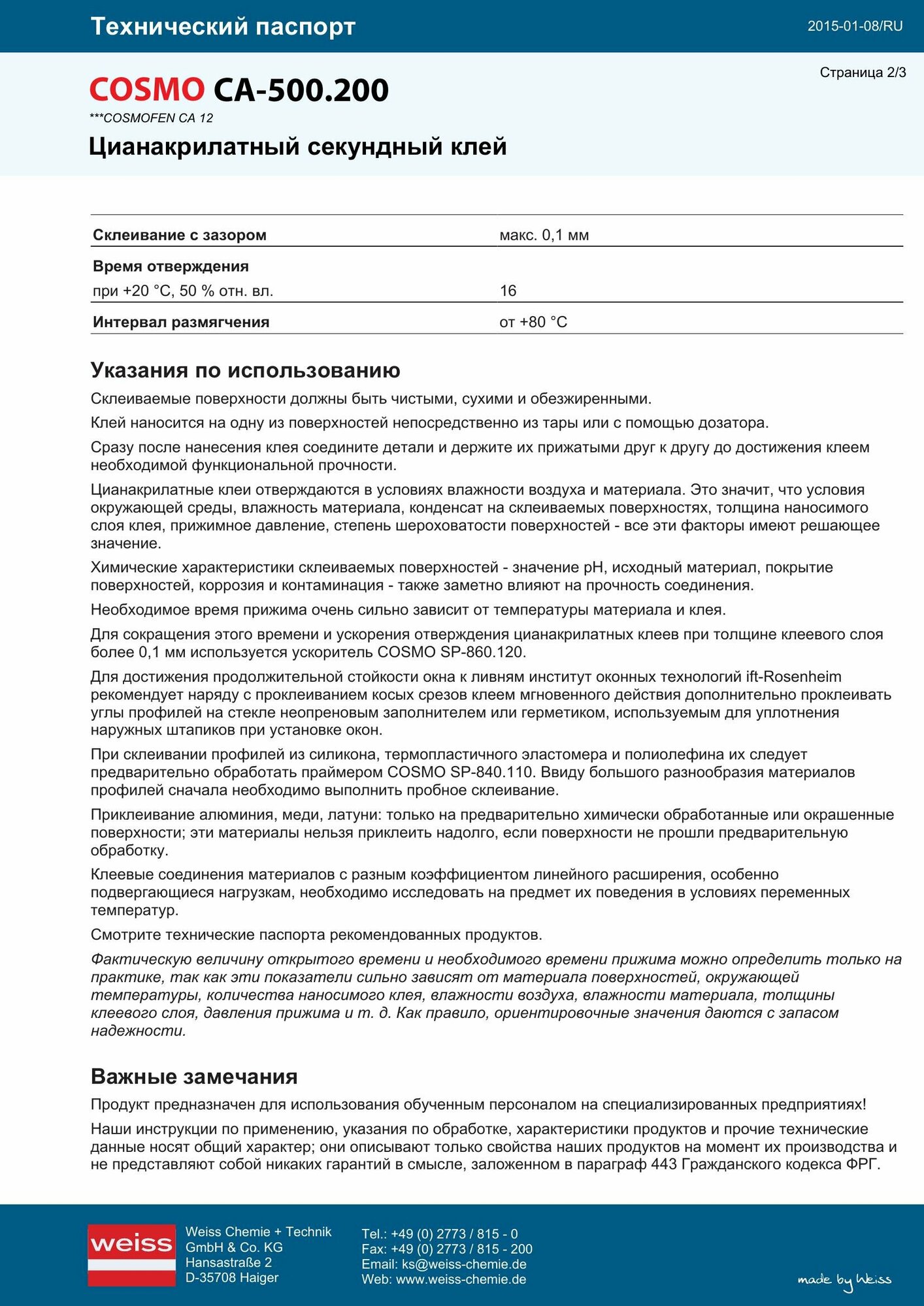 Клей Cosmafen CA-500.200 1шт 185 ₽ Подробнее