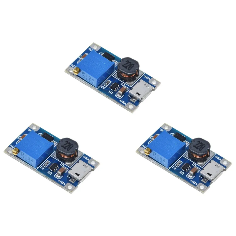 Инверторы и контроллеры MT3608 модуль регулируемого повышающего преобразователя постоянного тока (DC-DC, 2-24В, 5-28В, 2А) (3 шт.)